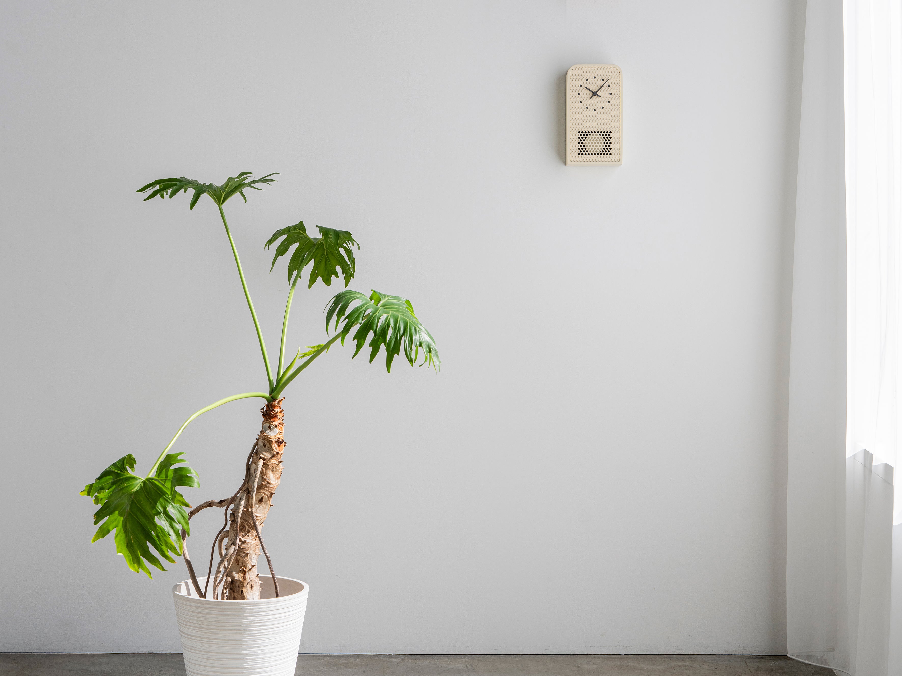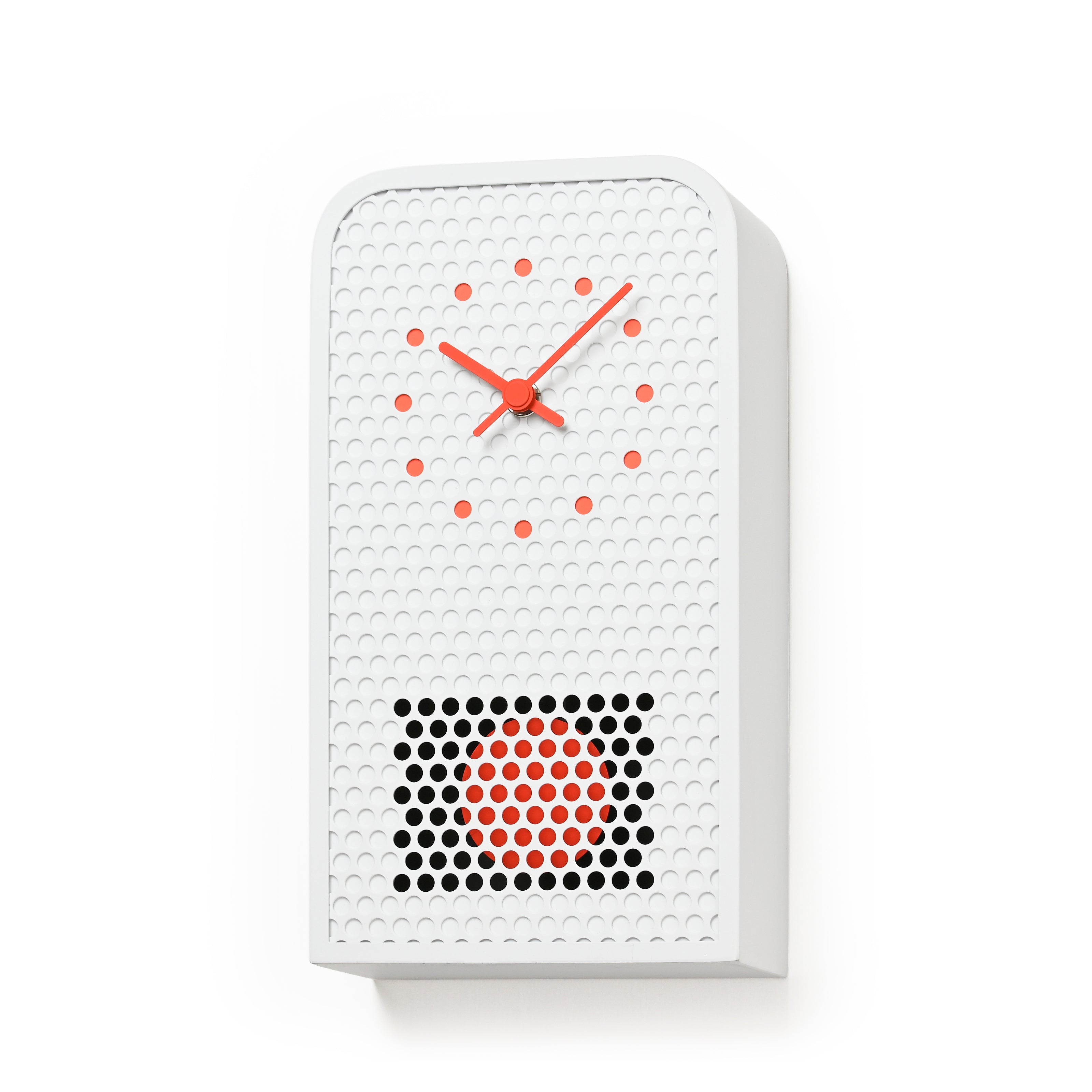 The case is crafted from perforated sheet metal using metalworking techniques such as cutting, bending, welding, and painting, processes refined over time in Japan’s Niigata region. The perforated metal is accurately cut with a tool called a punch to ensure clean lines and proper alignment of the holes allowing for efficient production without compromising on craftsmanship. The metal construction provides durability and a refined finish, while the hole-punched surface keeps the piece lightweight. Together, they form a fresh take on the timeless clocks tailored for contemporary living.