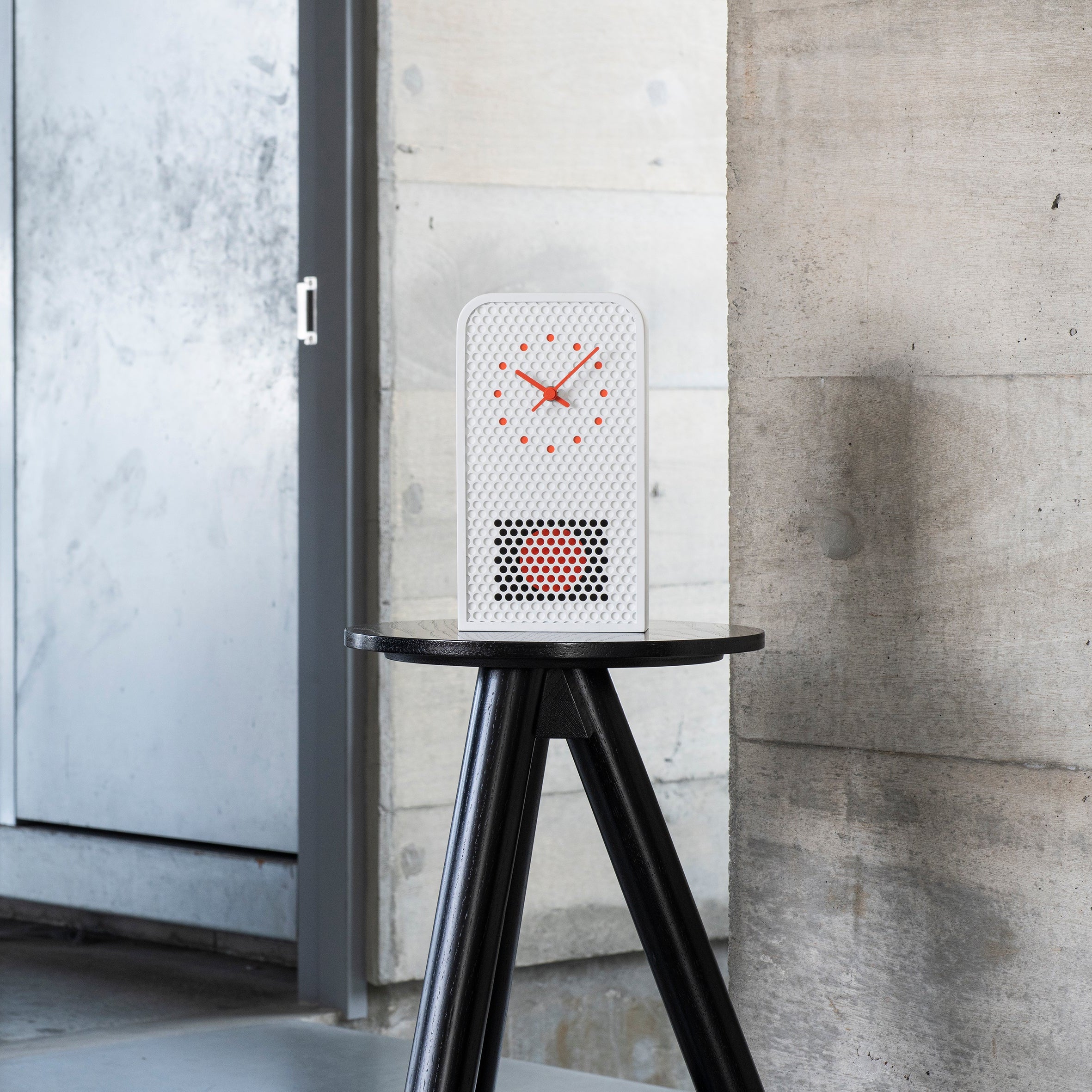While retaining the familiar structure and function of a classic pendulum clock, MOOV offers a fresh take. The pendulum remains partially visible through the circular cutouts, allowing movement and light to subtly fill the design. This interplay between transparency and rhythm highlights the unique character of the material.